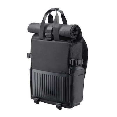 • Rucksack aus Nylon • Farbe: Schwarz, kompatibel zu 16″ • Besonderheiten: Notebookfach, Trolleyfähig