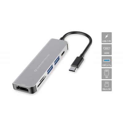 Conceptronic  DONN02G Multifunktionaler 6-in-1 USB Adapter USB-A 3.0 x 2 USB-C PD | 04015867222812