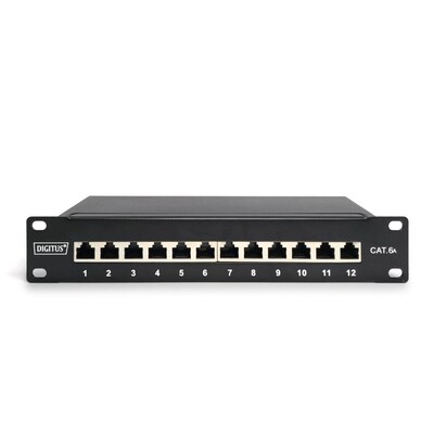 Digitus  CAT 6A Patch Panel, geschirmt, 12-Port, 1HE, 10″, schwarz | 04016032454861