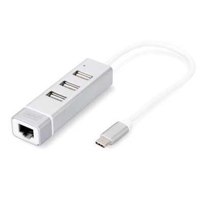 • Universeller USB 2.0 Multiadapter mit Typ C Port • Drei USB 2.0 Anschlüsse – Chipset: FE1.1S/RTL8152B • RJ45 Fast Ethernet Netzwerk Anschluss 10/100Mbit • Hochwertiges Aluminiumgehäuse • Kabellänge: 20cm