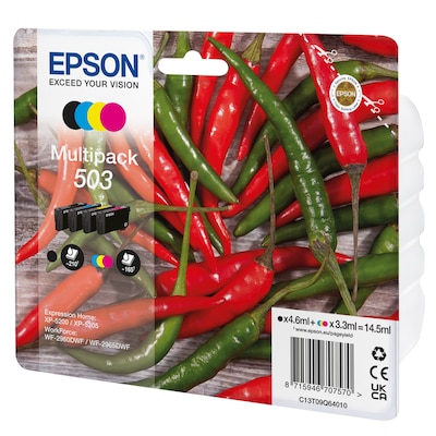 • Epson Tintenpatrone C13T09Q64010 • Farbe: Schwarz, Cyan, Magenta, Gelb (Multipack) • Reichweite: 210 Seiten / 4,6ml schwarz, 165 Seiten / 3,3ml farbig • Kompatibel zu: WorkForce WF-2960DWF
