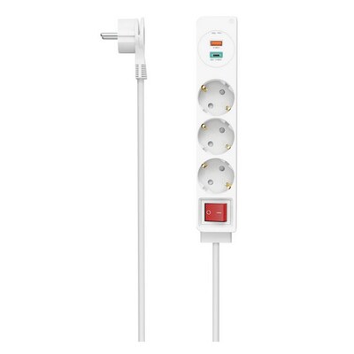 • 3 Steckdosen (Schuko) um 45° gedreht, komplett schaltbar • 2x USB-Anschlüsse 1x USB-A-Buchse und 1x USB-C kompatibel zu USB PD 18W • 1,4m Kabellänge • robustes Kunststoffgehäuse mit Flachstecker • zweipoliger, unbeleuchteter Ein-/Ausschalter