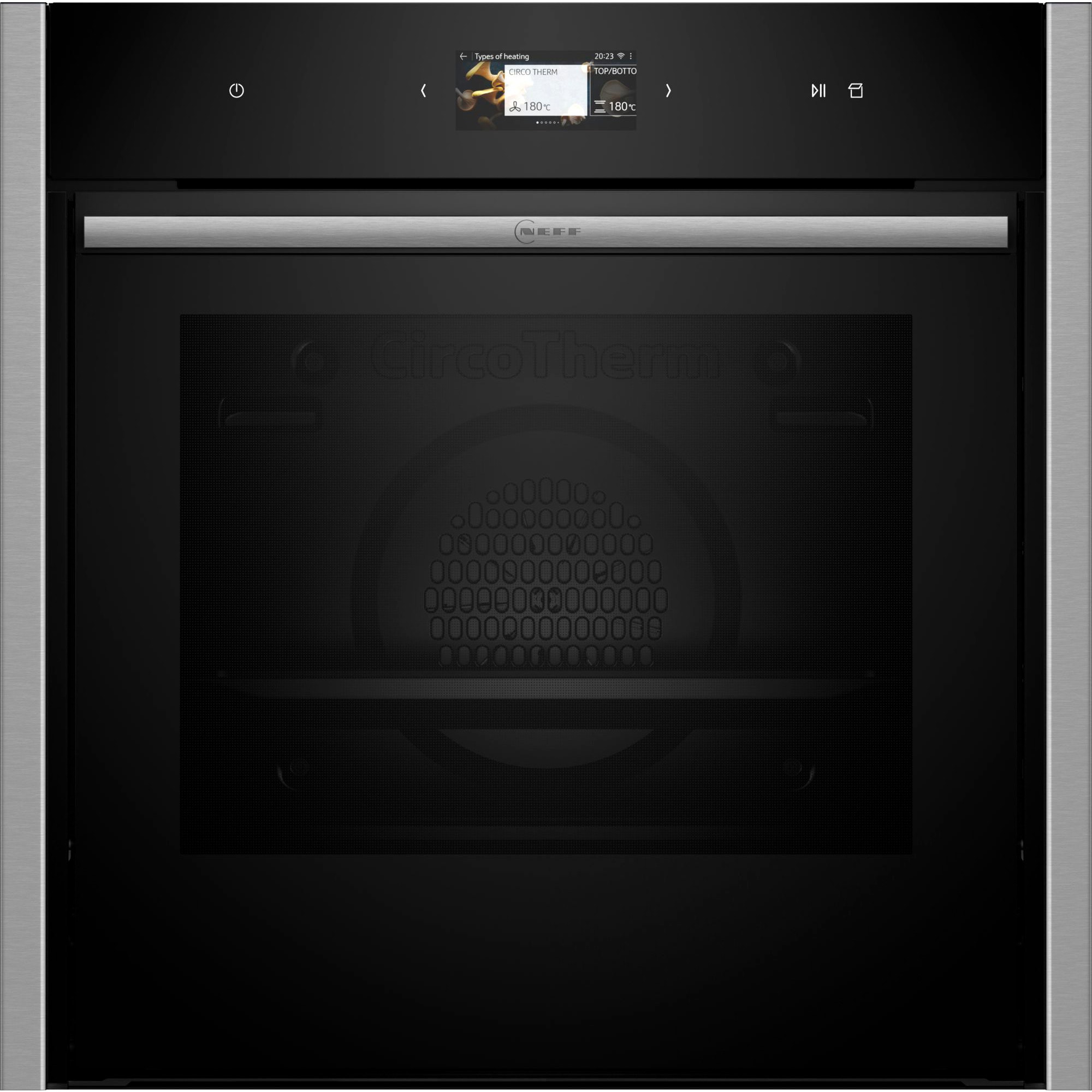 Home Connect Der Einbau-Backofen mit Dampfunterstützung Neff B64VS71N0 stellt auf einem Nutzinhalt von 71 Litern 20 Beheizungsarten zum vielfältigen und kreativen Zubereiten unterschiedlichster Gerichte zur Verfügung. Das einzigartige Heißluftsystem Circo