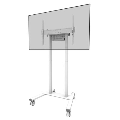 • mobiler Bodenständer 55-100″ mit großen Rollen, Stahl, weiß • für Flachbildschirme bis zu 100″ mit einer maximalen Tragfähigkeit von 110kg • abschließbare Halterung • erweiterbar mit Regalboden/AV-Halterung • feststellbare Doppelrollen