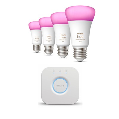 • Austauschtype: LED-Lampe / Sockel: E27 / Lichtfarbe: RGBW • Leistung: 6,5 Watt als Ersatz für k.A. • Amazon Alexa – Apple HomeKit – Google Home – Philips Hue • Lichtstr.: 806lm b. 2700K / Nutzungsdauer:15000h • Inklusive: Philips Hue 4 x E27 Leuchtmittel und Bridge (V2)